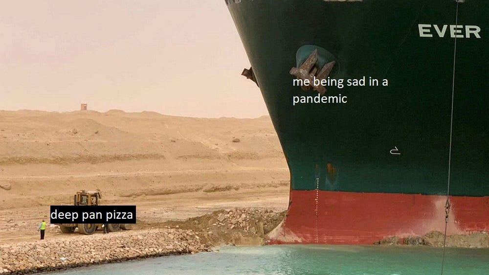 Being the sensitive writer baby that I am, I got some unexpected and quite drastic criticism this week and got bummed out about it. After moping alone in my room for several hours, I eventually had to eat, and while usually when I’m sad my instinct is takeaway pizza, it’s a bit too pricy at the moment (it’s also my instinct when I’m happy, but that’s by the by) . In lieu of this, I did decide to treat myself to a significantly cheaper £2 Chicagotown deep pan cheese and tomato from the corner shop, which I paired with my reliable Hellmann’s Garlic and Herb sauce. Together, it’s basically the same as a takeaway. Basically.