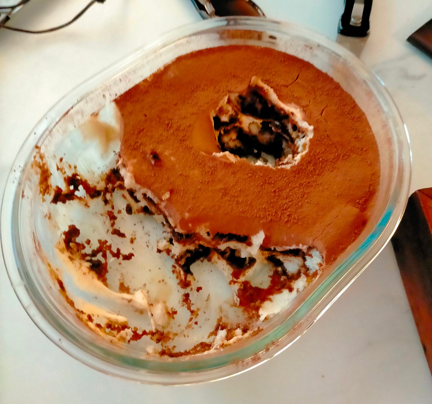 I love my friends. I love it even more when they live physically close to me. I advocate that all friendship groups should consider proximity to each other when they move. Living right by your friends has the pros of a commune, without all the weird class politics and nonethical monogamy or whatever. Particular if your friend/neighbour makes a tiramisu and needs immediate help in eating it. So thanks to Emma for this surprise treat, and for the ingenious idea of subbing in Five Farms Irish Cream liqueur as your booze of choice! Just don’t eat it like Josh did.